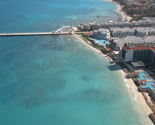 A la orilla de mar, frente a hoteles, residencias y resorts de lujo en la zona norte de Quintana Roo, luce a 300 metros de altura el contrastante…